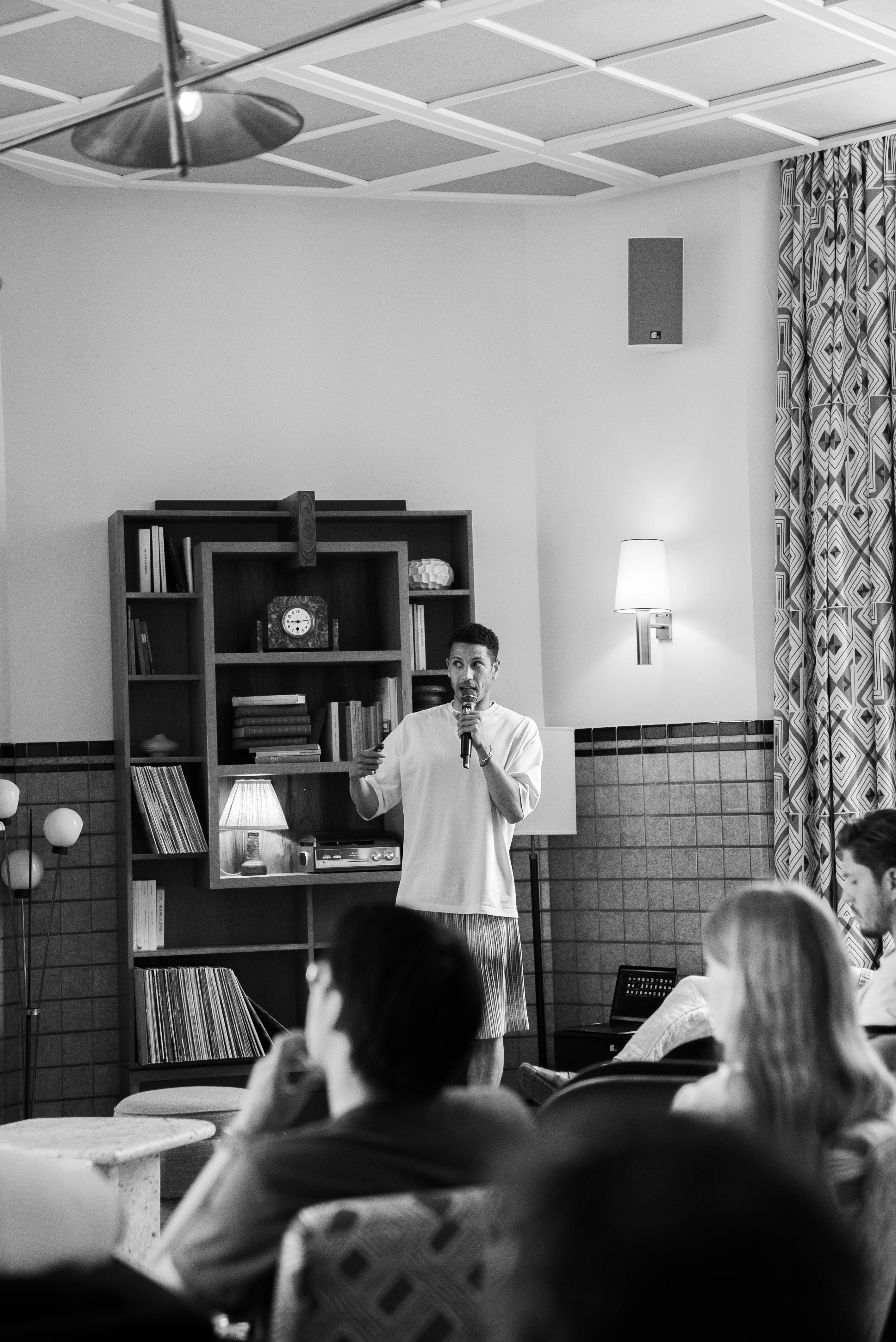 I’m in our studio in Amsterdam. It’s quite minimal, not too much colour. My team always teases me about that! Lots of steel, grey, black and concrete. Quite industrial design studio vibes. And it’s split over 2 floors. The downstairs area is a bit more relaxed and a bit cleaner. People work from here sometimes and friends come to hang out and have lunch.