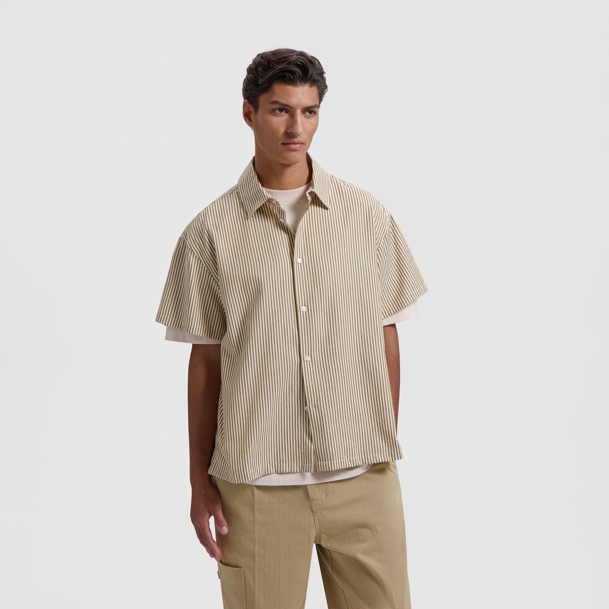 Boxy Seersucker Stripe SS Shirt - Cinnamon Brown