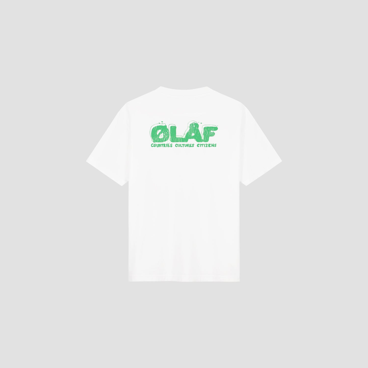 The Spunge Logo Tee in Optical White brings a fresh twist to a classic tee. Made from mid-weight 100% organic cotton | GOTS-certified (195gsm), it offers a soft yet durable feel. The tee features a seasonal logo graphic on the left chest and across the back, with a crackled effect adding a unique texture for a standout, casual look.