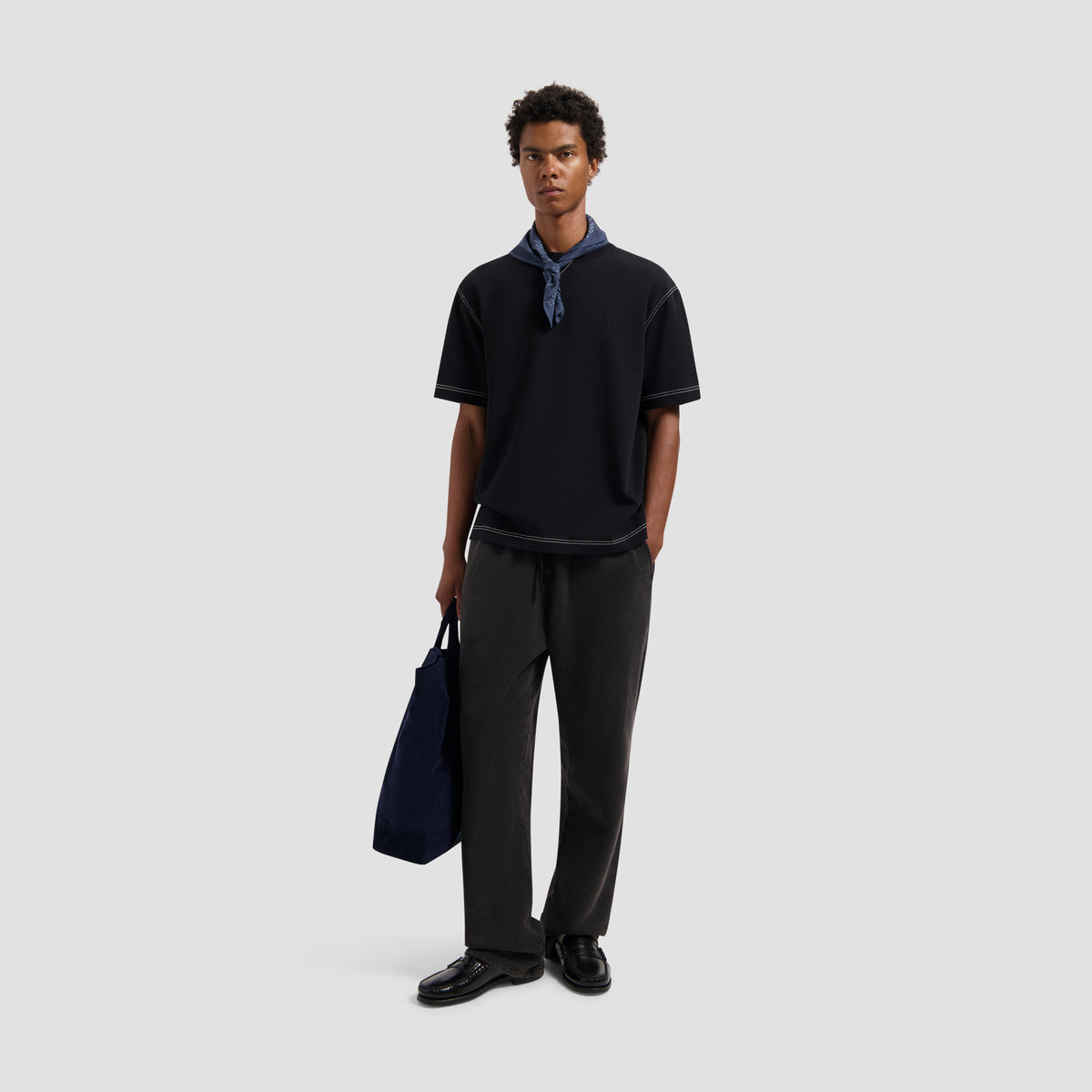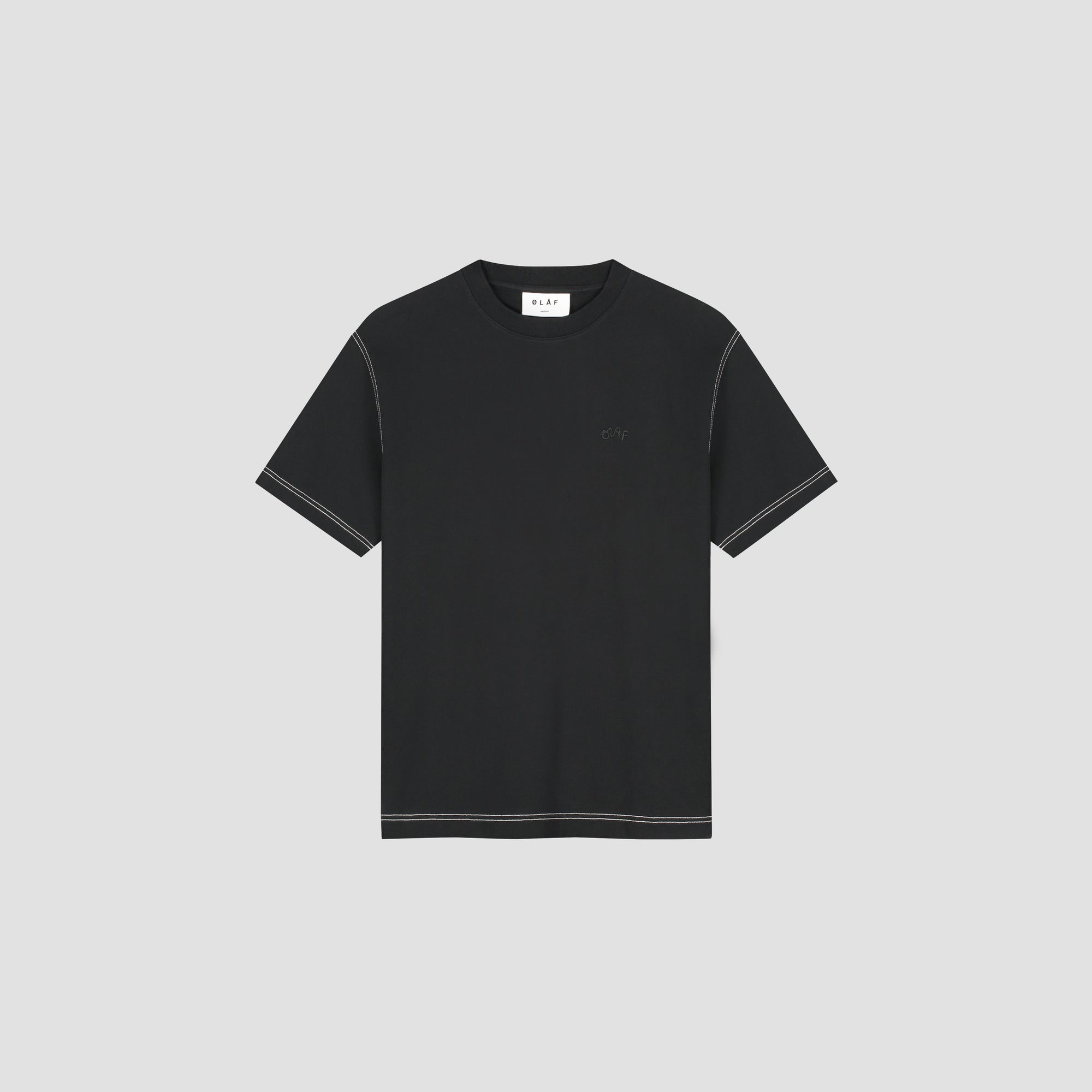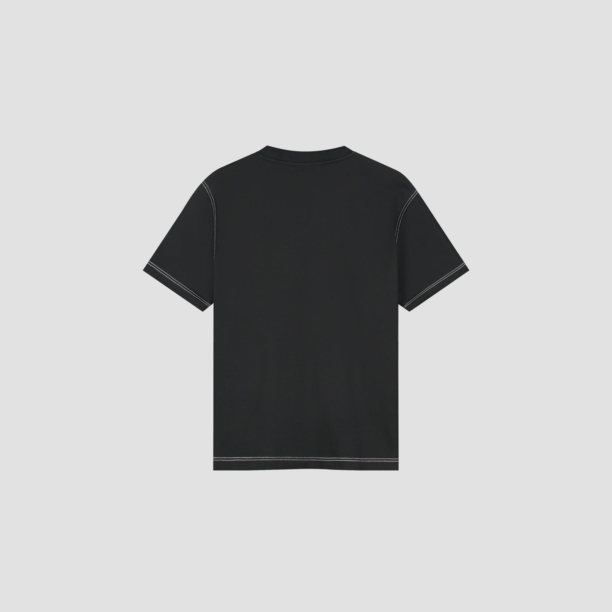 The Contrast Signature Tee in Black combines premium organic cotton with contrast stitching and open-end fabrication for a subtle design twist. Its boxy fit and embroidered chest logo make it an elevated essential in any wardrobe.