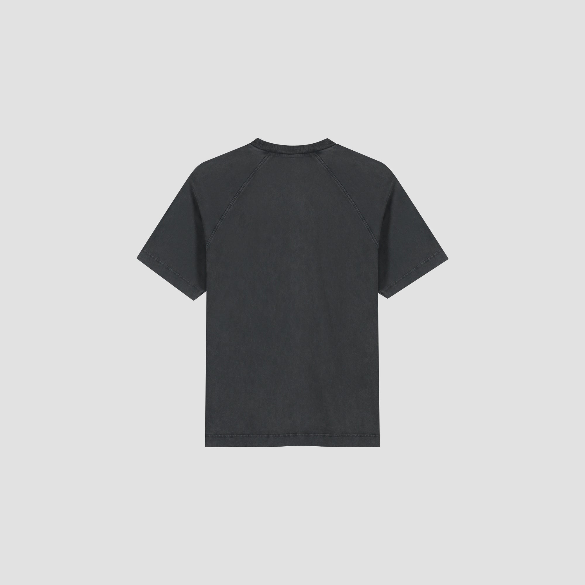 The Washed Signature Tee in Charcoal offers a vintage-inspired wash and a soft open-end cotton texture. Designed with a boxy fit and raglan seam detailing, it’s finished with signature chest embroidery for a timeless look.
