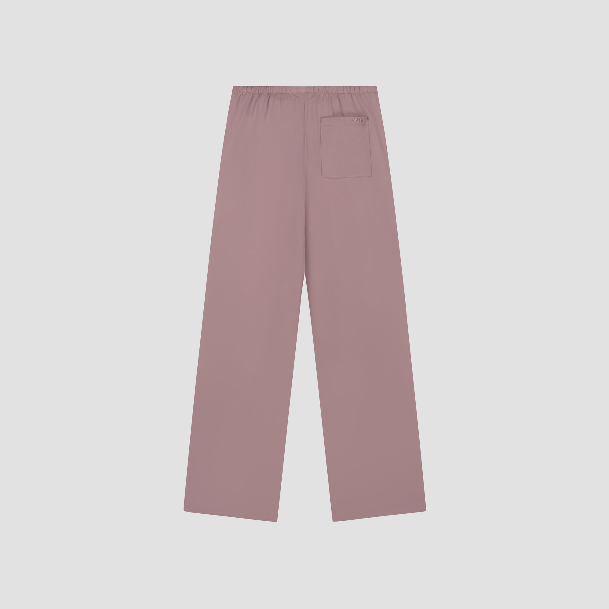 The Textured Drapey Pant in Twilight Mauve combines a straight fit with a fluid texture that moves effortlessly. An elasticated, adjustable waistband ensures comfort for all sizes, while the embroidered retro logo adds a subtle finishing touch.