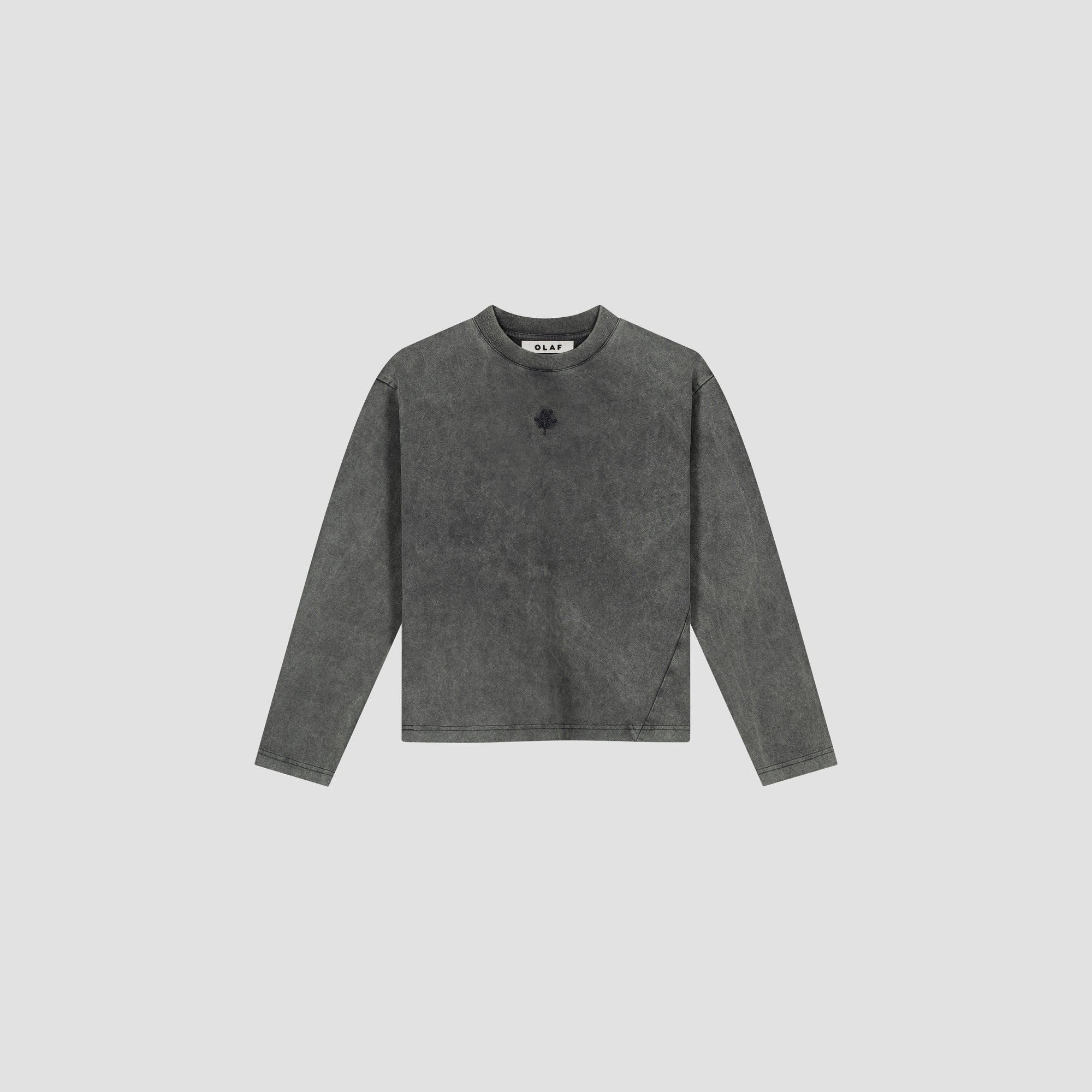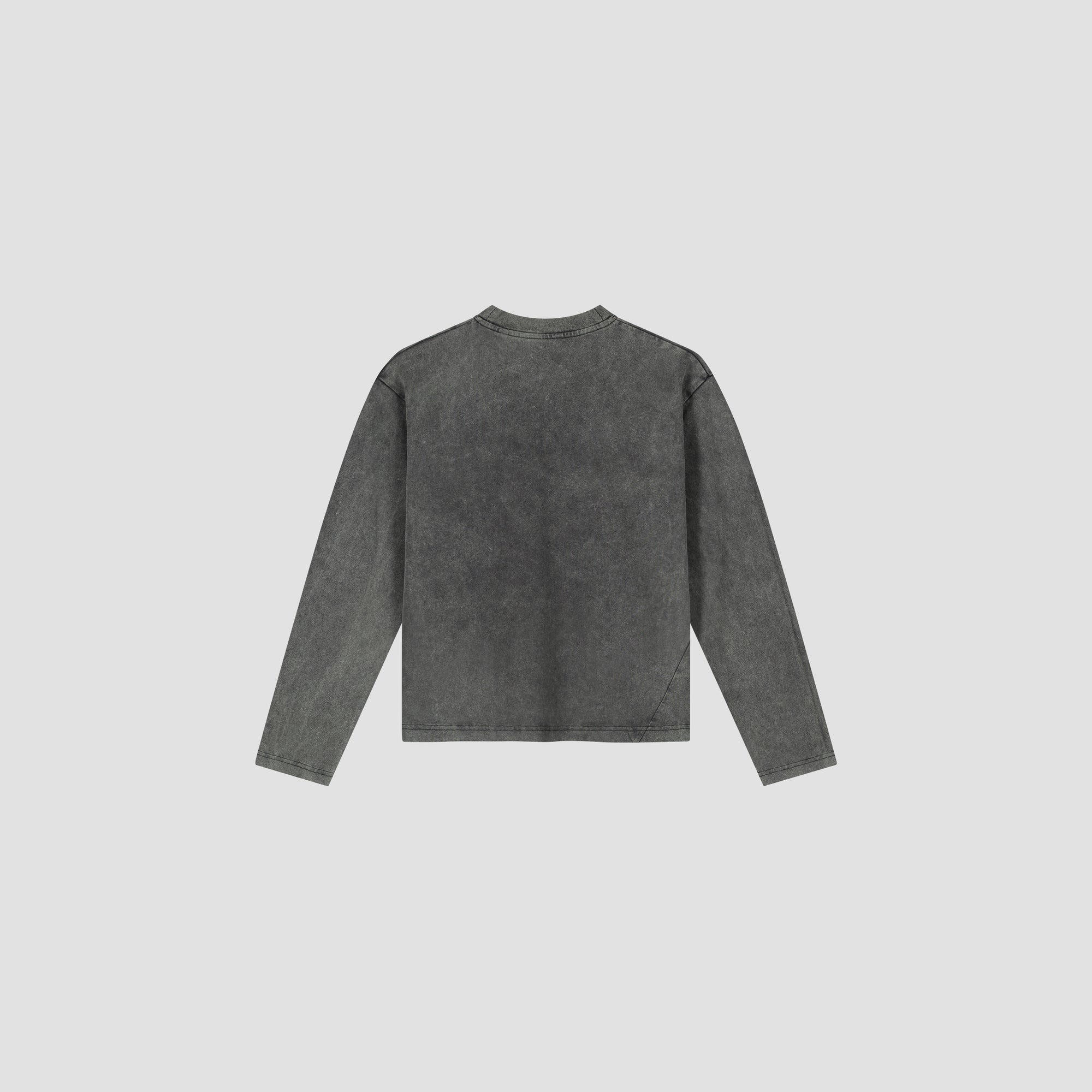 The Monogram Washed Tee in Charcoal features a soft washed finish with a subtle monogram logo on the chest. Designed for everyday ease, it offers a relaxed feel with a refined graphic touch.