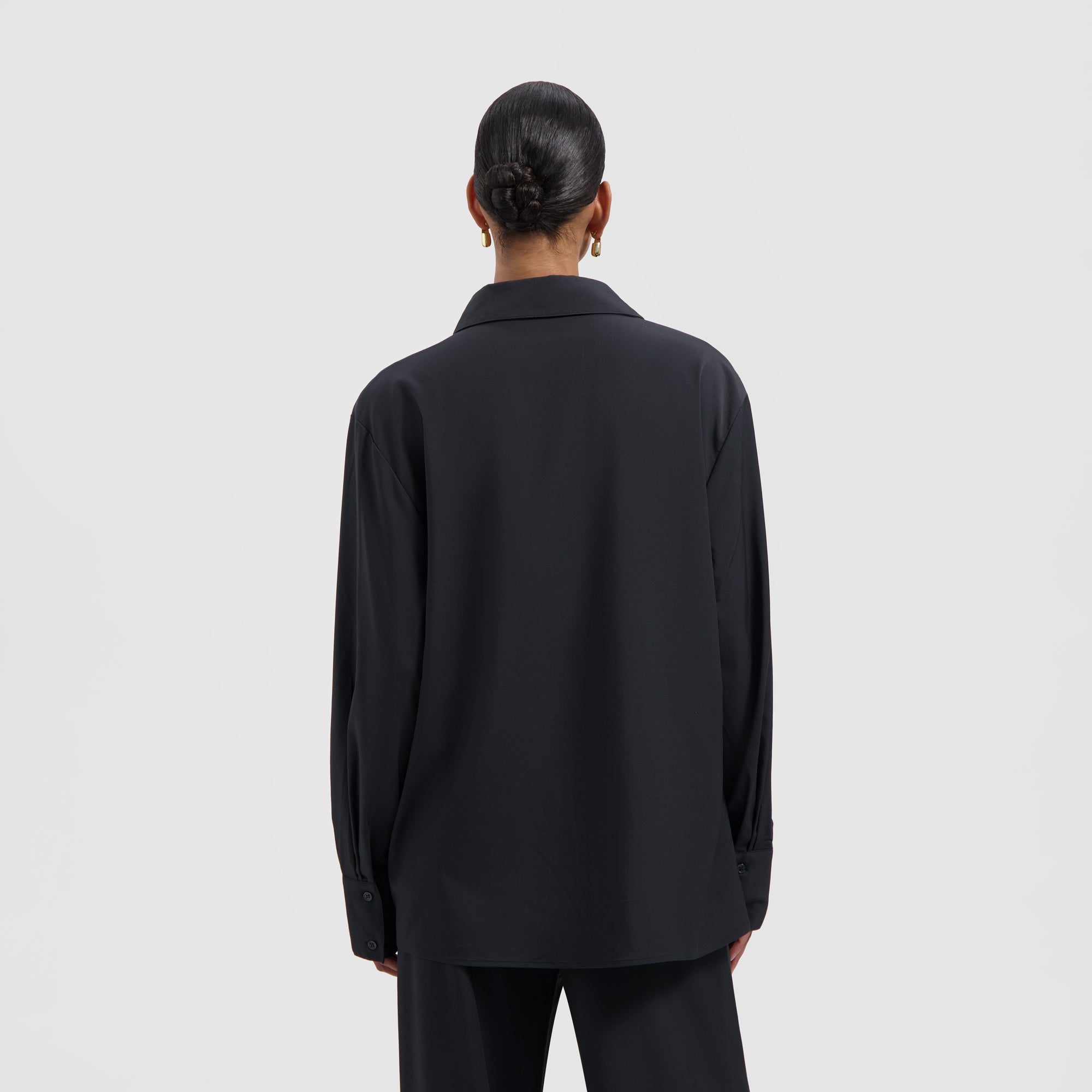 The Drapy Asymmetric Shirt in Charcoal is a modern twist on a classic silhouette, featuring a side button closure that adds a modern, clean touch. Perfect for an evening out, elegant yet effortlessly cool. Model info: Height: 178 cmWaist: 64 cmHips: 90 cmWears size S Made in China65% Modal, 32% Polyester, 3% ElastaneSide button closure