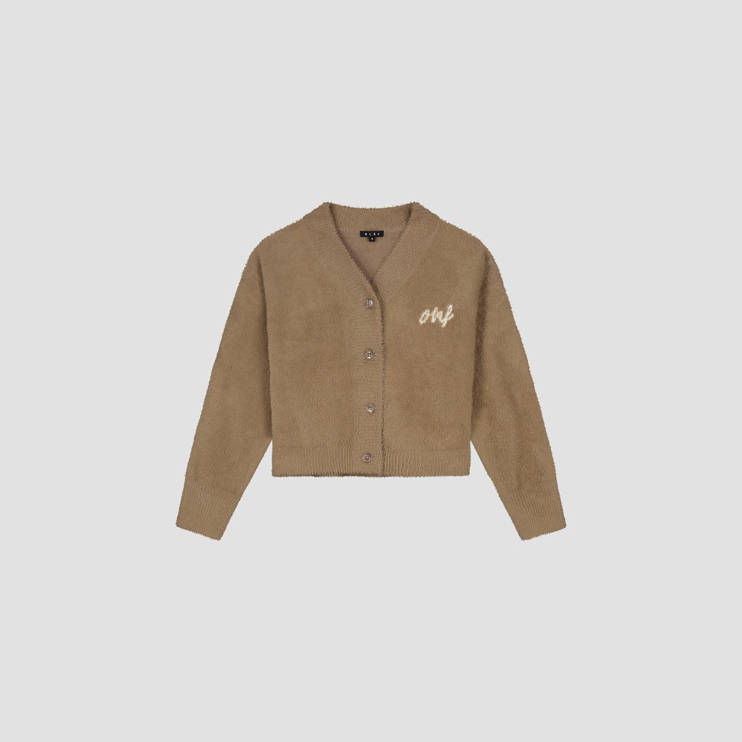 Designed for effortless layering, the Fluffy Script Logo Cardigan in Starfish is crafted from a super soft material for a cozy feel. It features our logo at the left chest and a clean simple design that seamlessly transitions from casual outings to cosy evenings at home. Model info: Height: 178 cmWaist: 64 cmHips: 90 cmWears size S Made in China53% Polyamide, 30% Viscose, 17% PolyesterOlaf logo on the left chestButton closure at the front