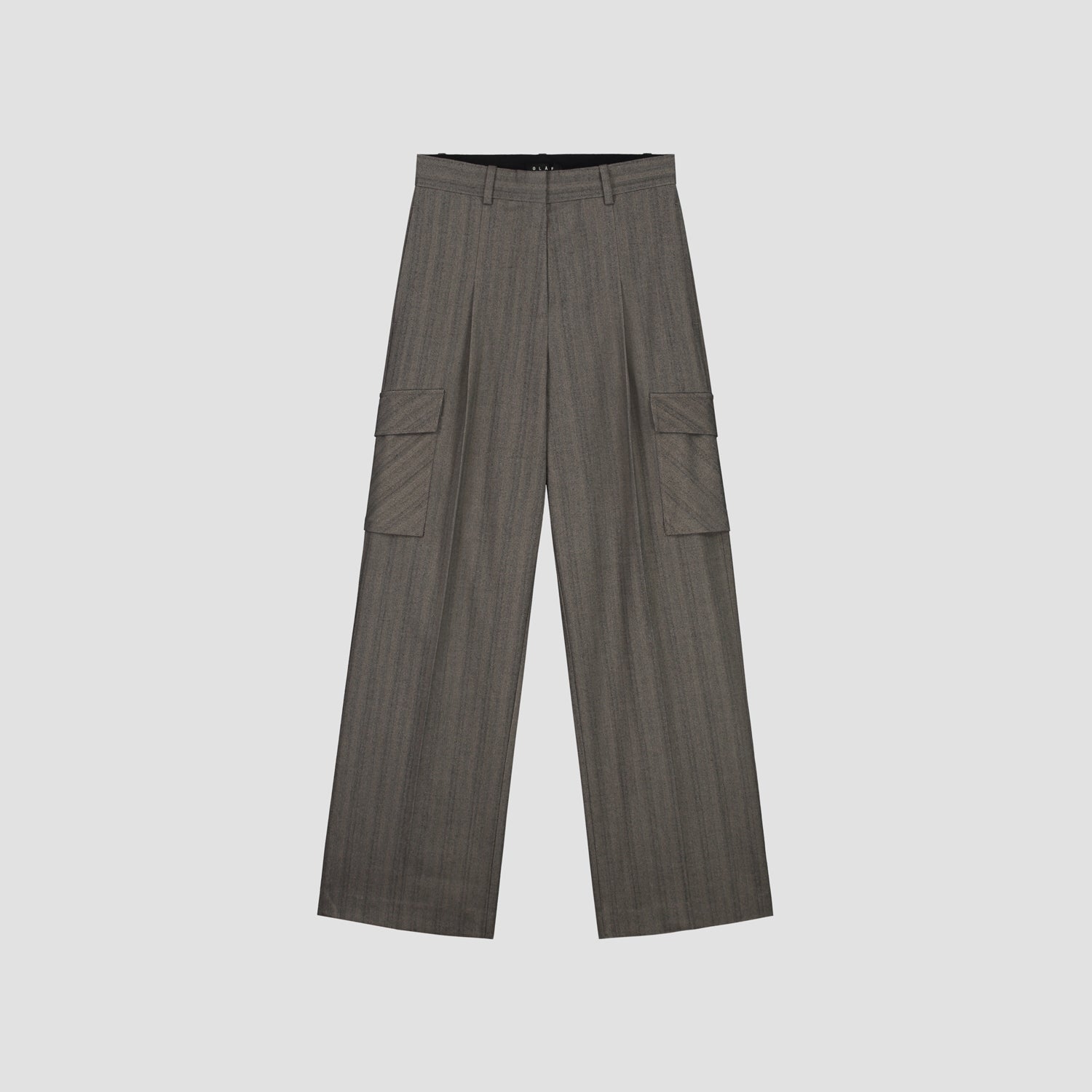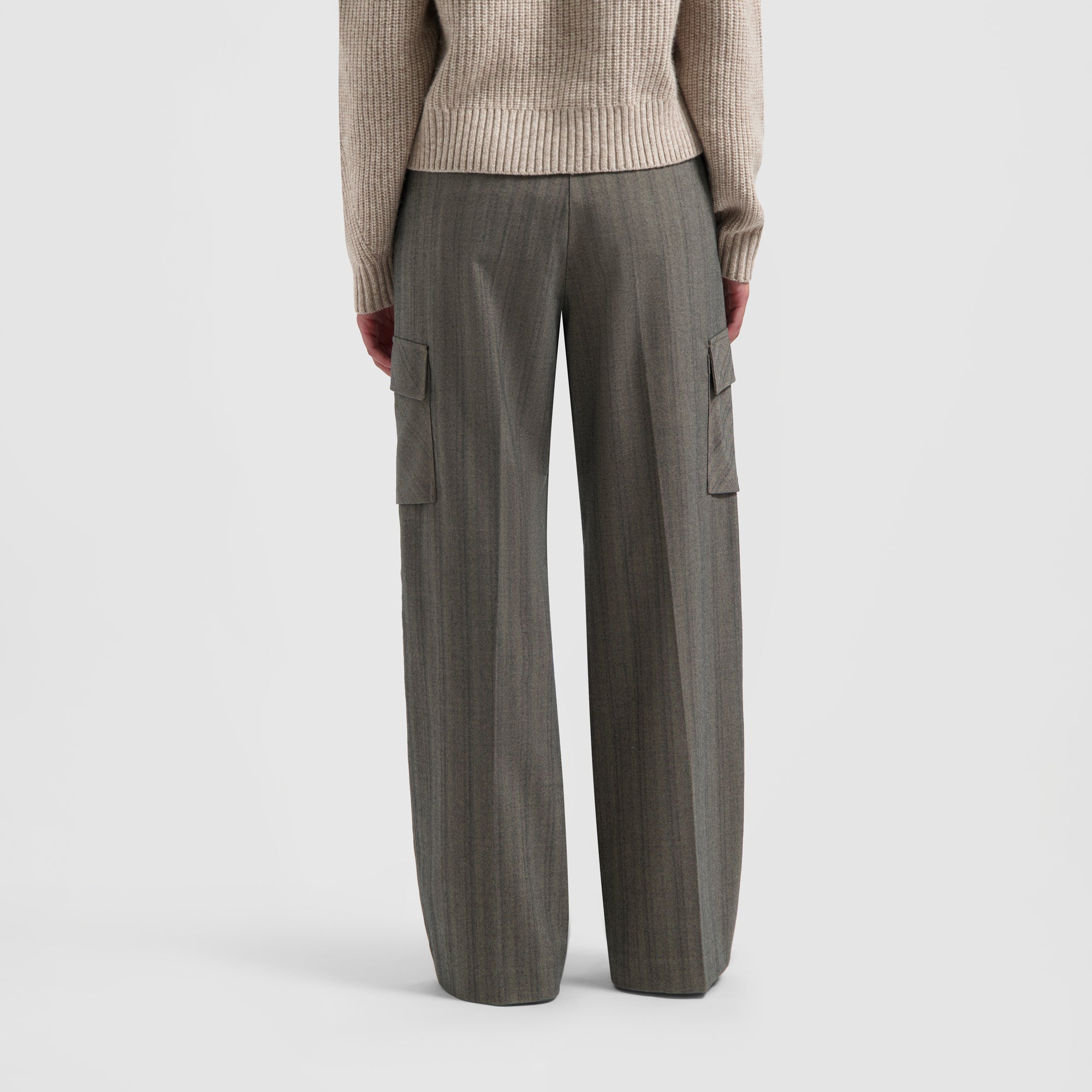 Introducing our Herringbone Cargo Pants in Brown, a stylish and functional addition to your wardrobe. These pants feature a distinctive herringbone pattern that adds a touch of sophistication to the classic cargo design. Equipped with two spacious leg pockets, they offer practical storage without compromising on style. Perfect for everyday wear or more adventurous outings, these cargo pants combine utility with a refined aesthetic, making them a versatile choice for any occasion. Model info: Height 177cmWaist 58cmHips 93cmWears size S 62% polyester, 28% rayon8% wool, 2% elastaneStraight fitSide cargo pocketsMade in China