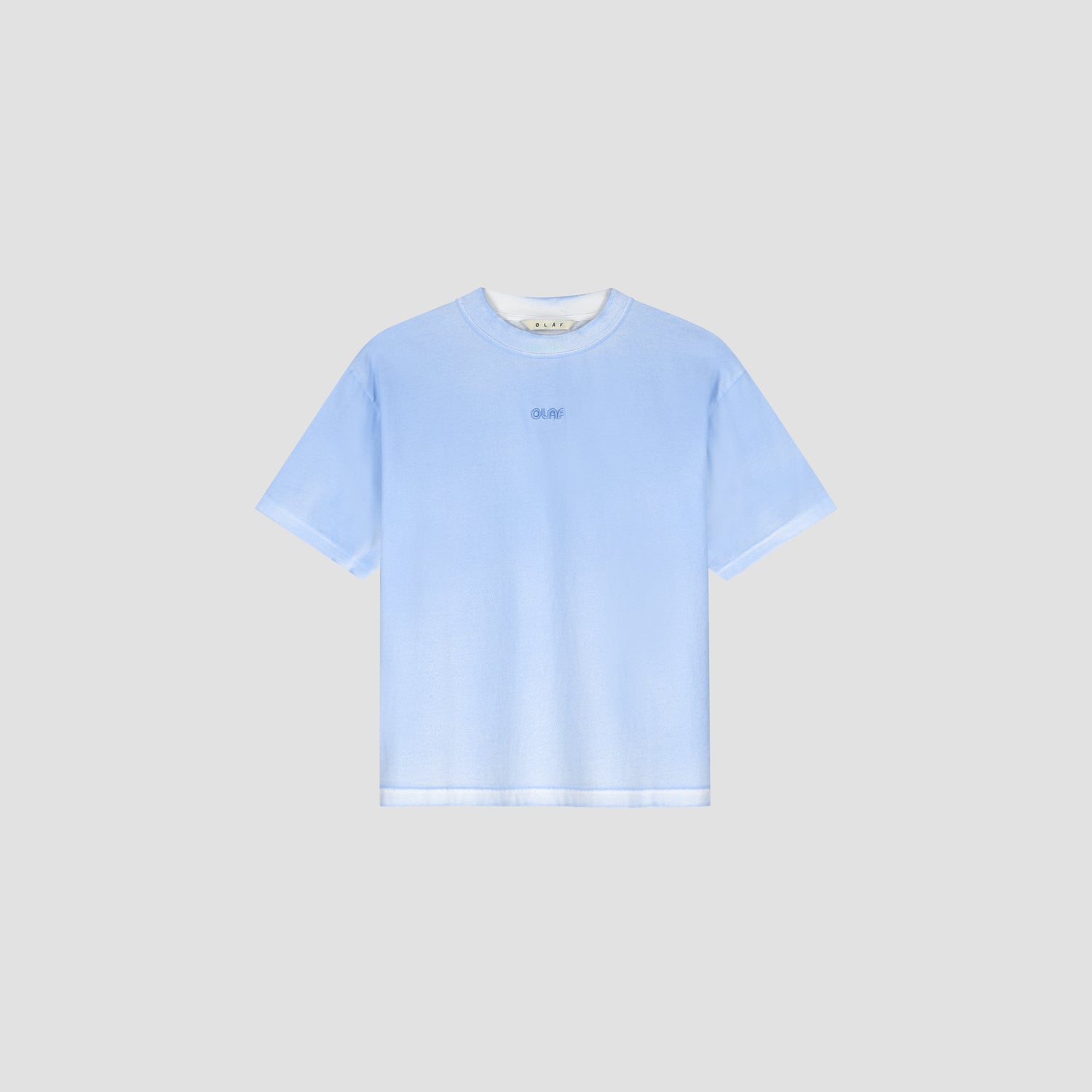 The Sprayed Boxy Tee in Surf Blue features a classic boxy fit with a retro logo embroidery on the front. The tee is enhanced with a pigment spray effect with a white interior and blue exterior, giving each tee a one-of-a-kind look. Made from 100% organic cotton | GOTS-certified, it offers both style and durability.