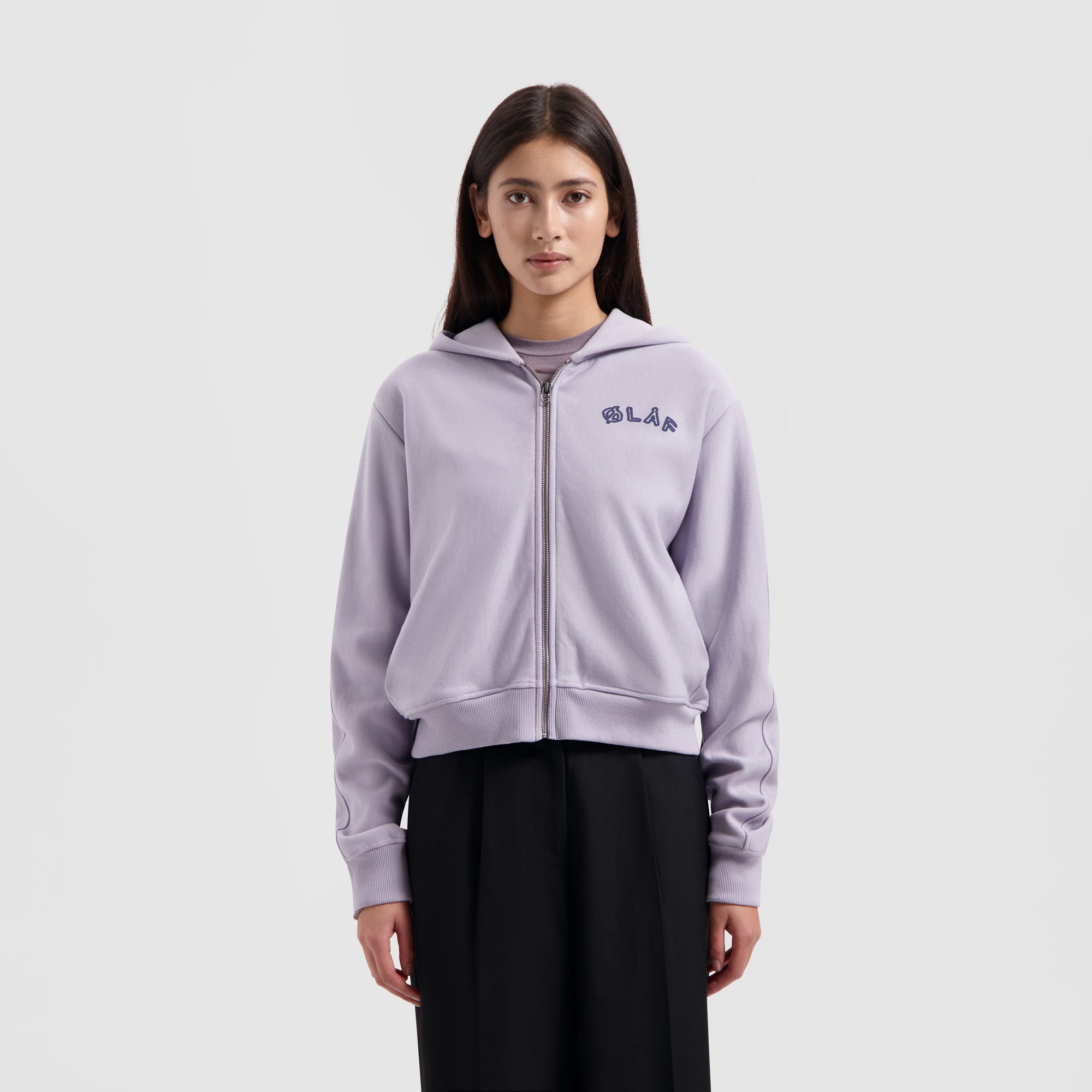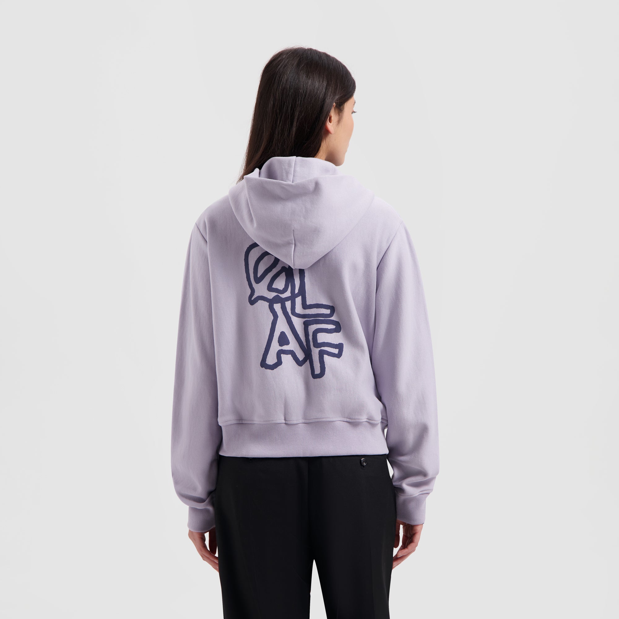 The ØLÅF WMN Layered Zip Hoodie in Washed Purple is the latest addition to the sweater collection. Made from premium jersey sweat fabric, this cropped-fit piece comes with a full zip and side pockets. It showcases our layered artwork on the back and logo on the chest. The hoodie comes with a soft ribbed texture on the bottom hem, and cuffs, seamlessly blending comfort with style.