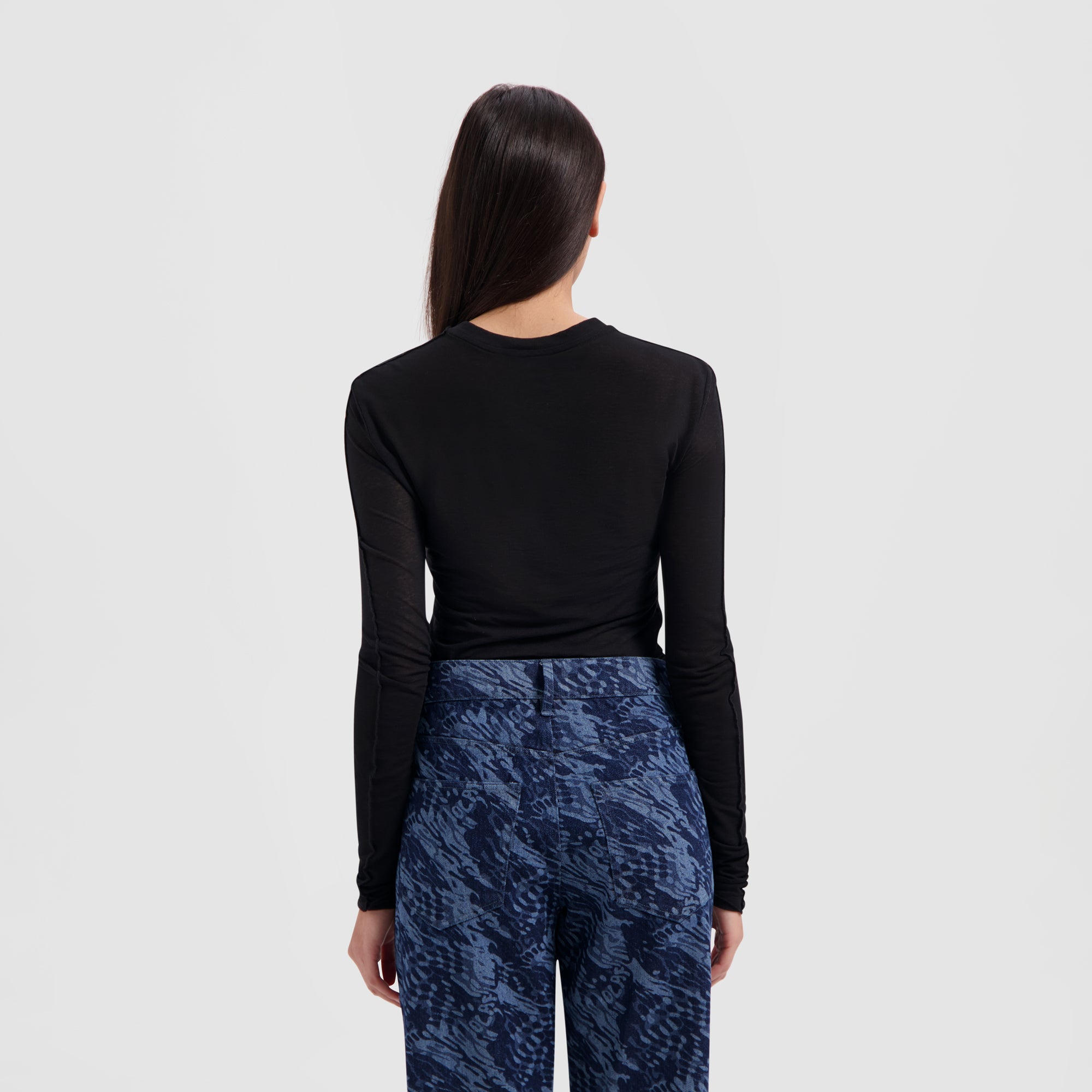 The Mini Logo LS Tee in Black is a sheer lightweight jersey, perfect as a standalone piece or as a layering basic. Featuring our tonal embroidered women's retro logo above the front hem, this slim-fit long-sleeve top perfectly adapts to your body to make you feel confident and comfortable.