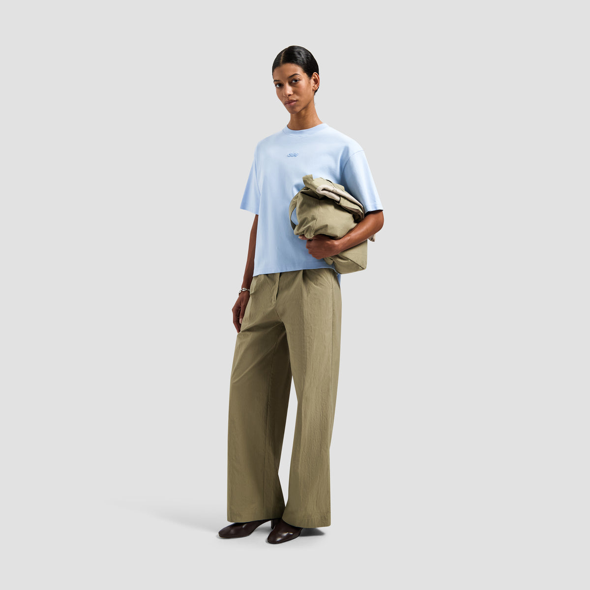 The Retro Logo Boxy Tee in Open Air brings a clean aesthetic to a relaxed silhouette. Crafted from soft organic cotton, it delivers an elevated everyday tee with a bold retro-inspired logo.