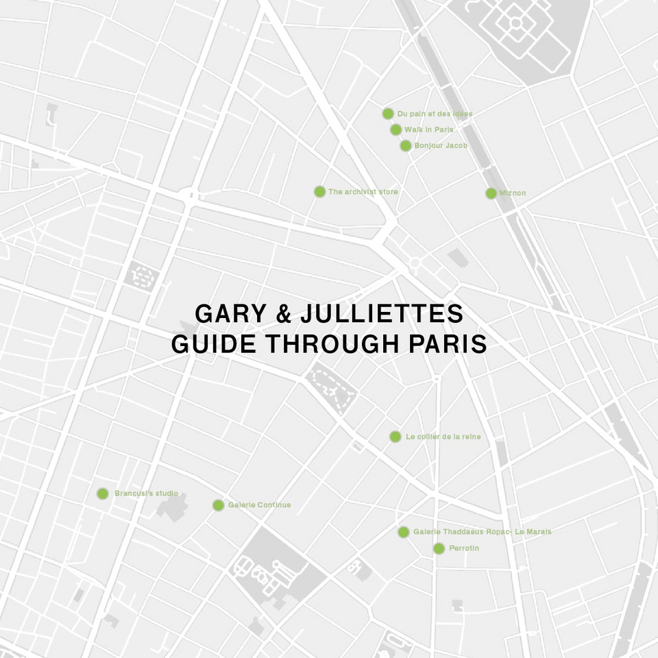 In our neighborhood, it would be Brancusi's studio, a small place full of his sculptures, our first date together. Then go to « the archivist store», a vintage shop with a very detailed selection of designers. For galleries, we recommend Perrotin, galerie continua and Galerie Thaddaeus Ropac- Le Marais. For party it will be the @psychic.samba and bavardages_ parties that friends organise!