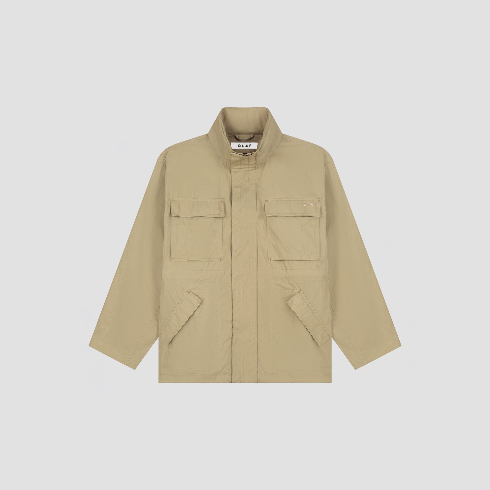 The Field Jacket in Treehouse is a technical jacket with refined pocket detailing. Adjustable drawcords at the waist and hem, paired with a high-neck design, make it perfect for colder days. A modern, unique outerwear piece that pairs effortlessly with the Relaxed Cargo Pant.