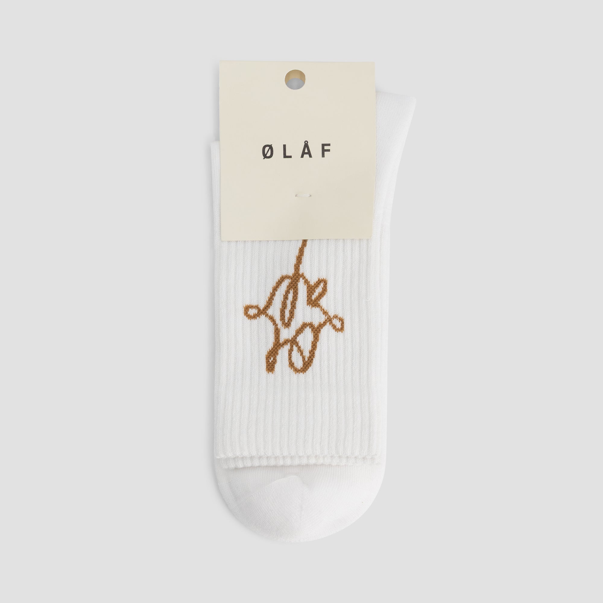 The Monogram Sock in Optical White features an all-over monogram pattern on a soft, supportive knit. A subtle graphic update to your daily rotation.