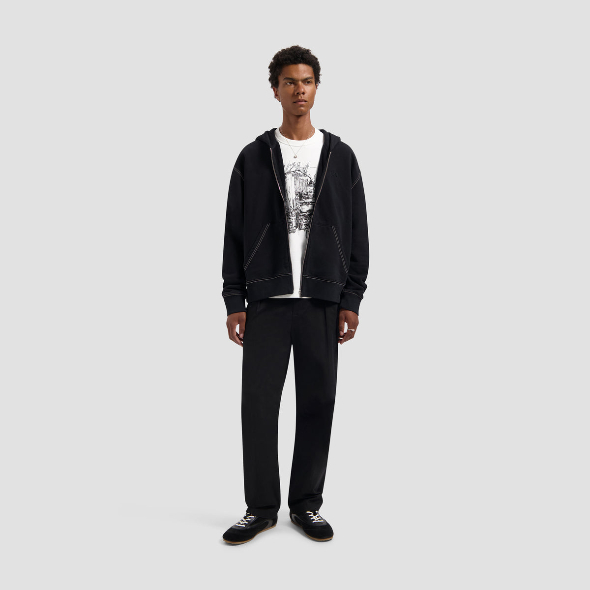 The Regular Pleated Pant in Black is a refined everyday essential. Featuring pleat detailing at the front and tonal OLAF embroidery above the back pocket, it combines a classic silhouette with modern detailing.